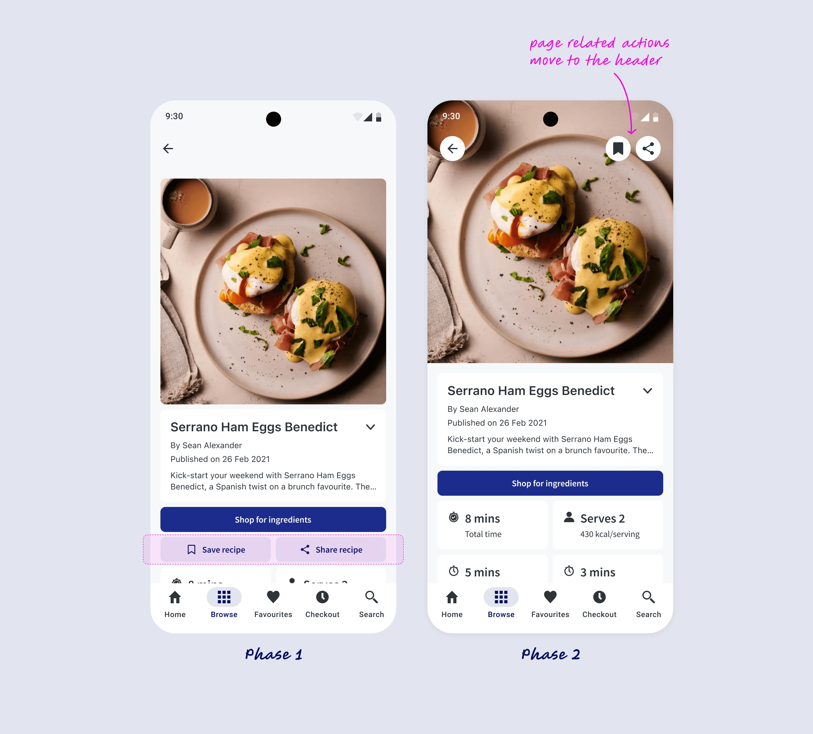Page-level actions (e.g. sort, filter, add to favourites, etc.) will move into the native header, aligning with iOS and Android best practices for contextual actions. This change requires more than a visual adjustment, as it affects how some of our features work, and how actions are prioritised and structured within each page, hence the decision to delay this change to Phase 2.